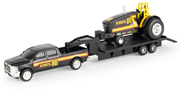 Truck with Lowboy Gooseneck Trailer Carrying Riding Lawn-Mower