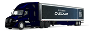 Freightliner Fifth Generation Cascadia Raised Roof Sleeper in black and blue with a 53' Utility Trailer with Skirts... |