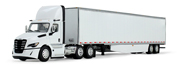 Freightliner Fifth Generation Cascadia Raised Roof Sleeper in white with 53' Utility Trailer with Skirts in... |