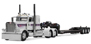 Peterbilt Model 389 with 36” Flat Top Sleeper in White and Black Hauling Fontaine Magnitude Lowboy Trailer ... |